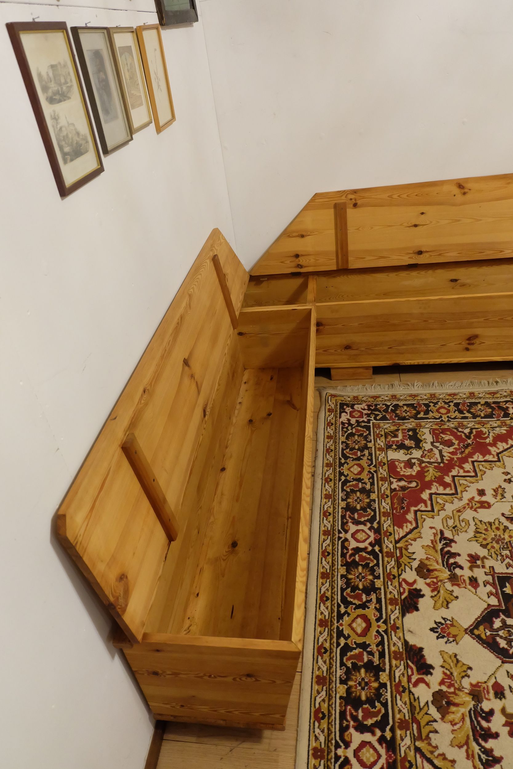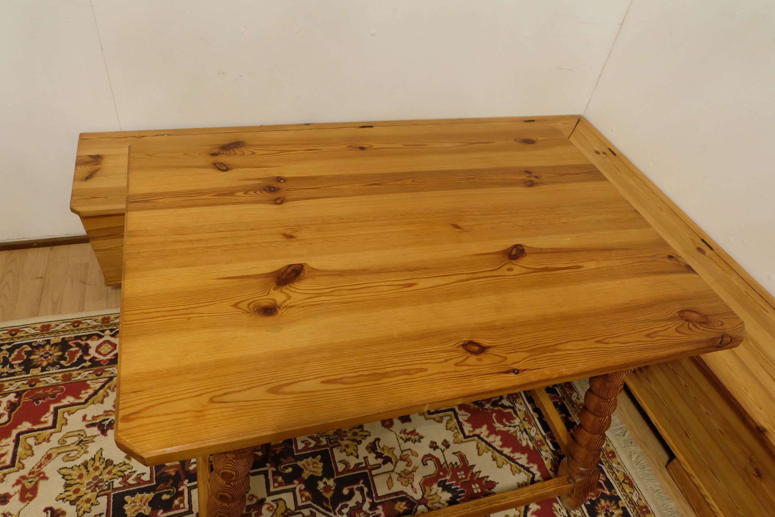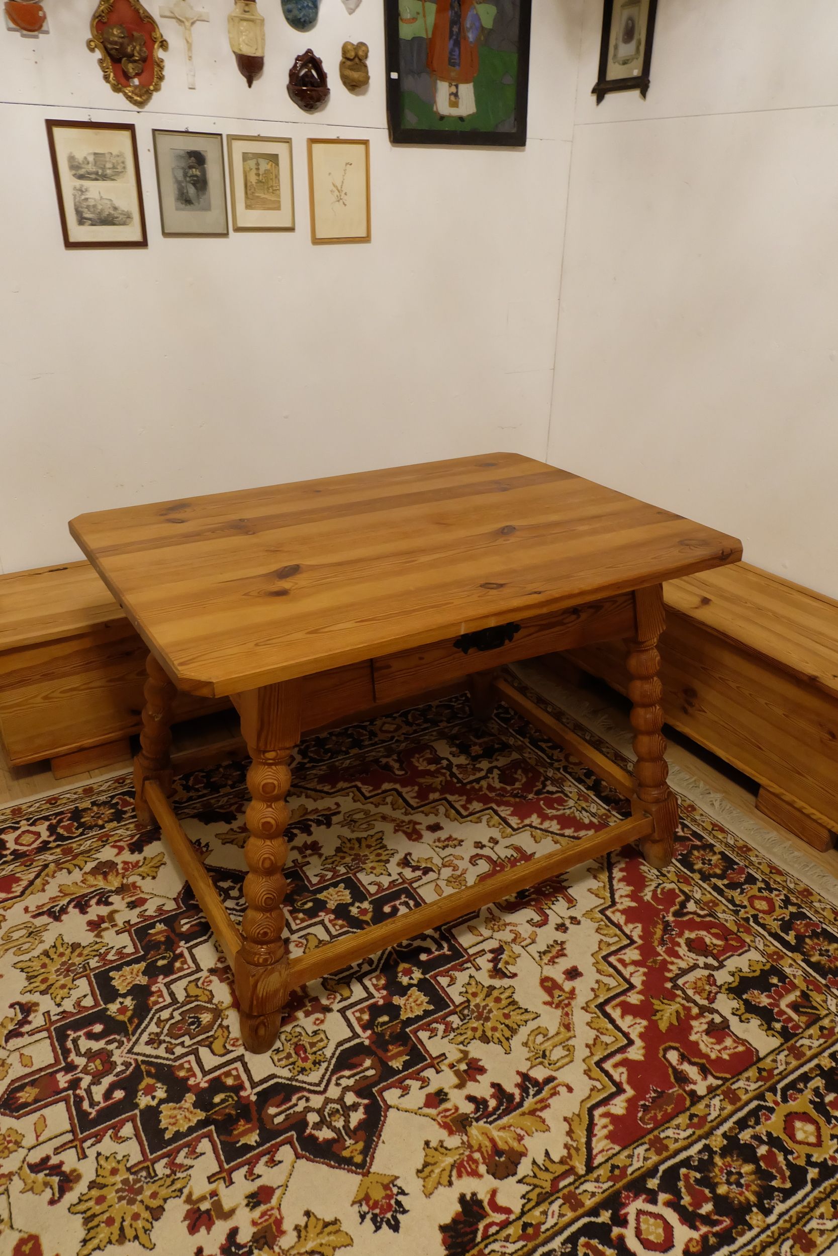 Eine Esstischgruppe bestehend aus zwei Truhenbänken, zwei Sessel und einen rechteckigen Tisch mit Lade. Sehr schöner, stabiler und sauberer Zustand